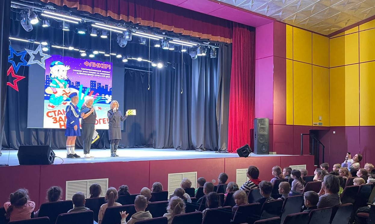 Для детей был показан фильм о световозвращающих элементах, они узнали историю появления первых фликеров, а также увидели модели правильного крепления световозвращателей на одежде и рюкзаках.